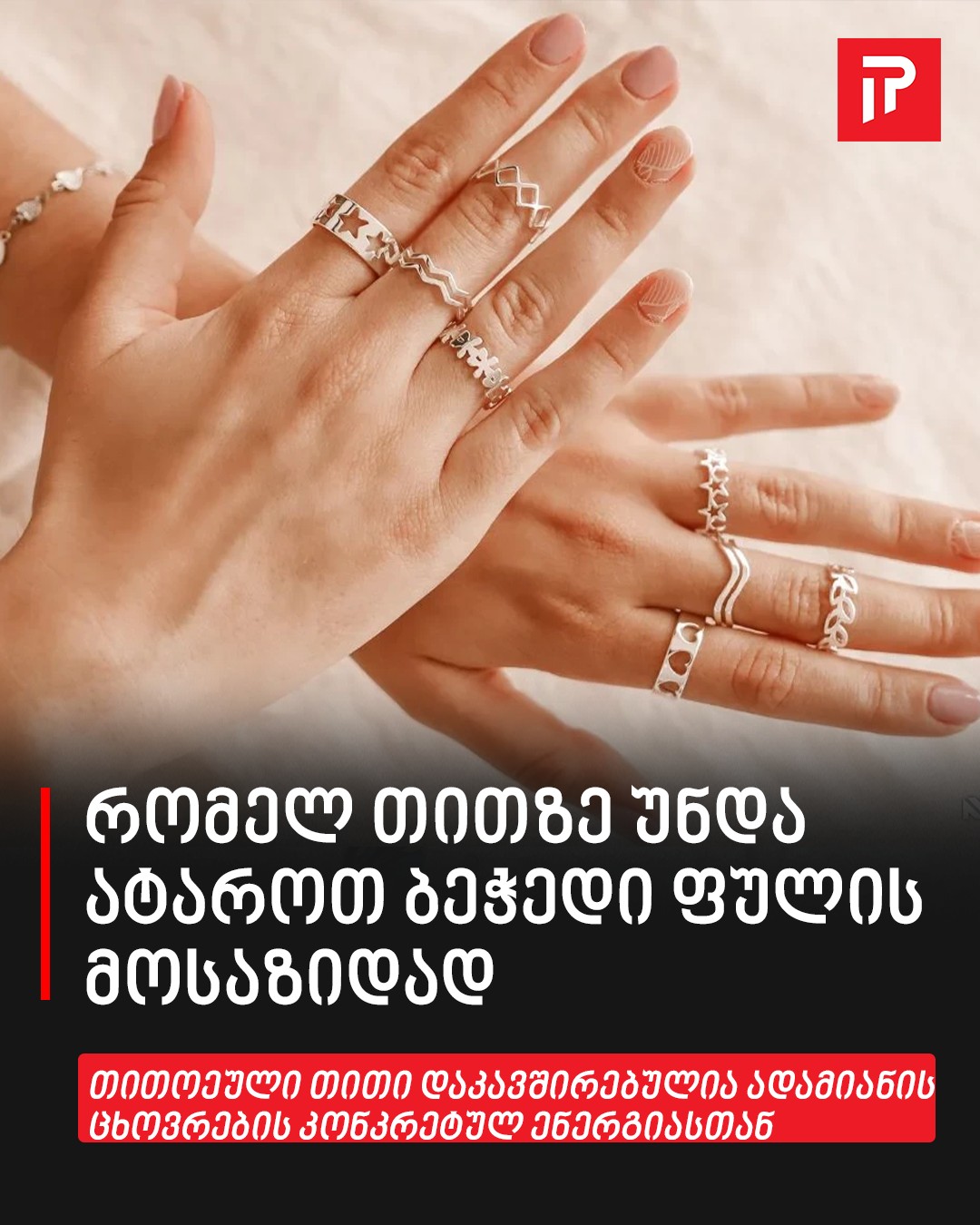 ბეჭედი დიდი ხანია აღარ არის უბრალოდ ლამაზი სამკაული. დღეს ის სტატუსის სიმბოლოს, სტილის გამოხატულებას და ერთგვარ თილისმასაც კი წარმოადგენს. ქირომანტიის უძველესი სწავლების თანახმად, ხელის თითოეული თითი დაკავშირებულია ადამიანის ცხოვრების კონკრეტულ ენერგიასთან და სფეროსთან. ითვლება, რომ სწორად შერჩეულ ბეჭედს შეუძლია გააძლიეროს გარკვეული ხასიათის თვისებები და გავლენა მოახდინოს ფინანსურ კეთილდღეობაზეც კი. ამ პრაქტიკის მომხრეები ხელს ადამიანის ბედისწერისა და პოტენციალის რუკად მიიჩნევენ. ამიტომ, სამკაულების არჩევა შეიძლება იყოს არა მხოლოდ ესთეტიკური გადაწყვეტილება, არამედ უნიკალური ინსტრუმენტი წარმატების, სტაბილურობისა და ახალი შესაძლებლობების მოსაზიდად.