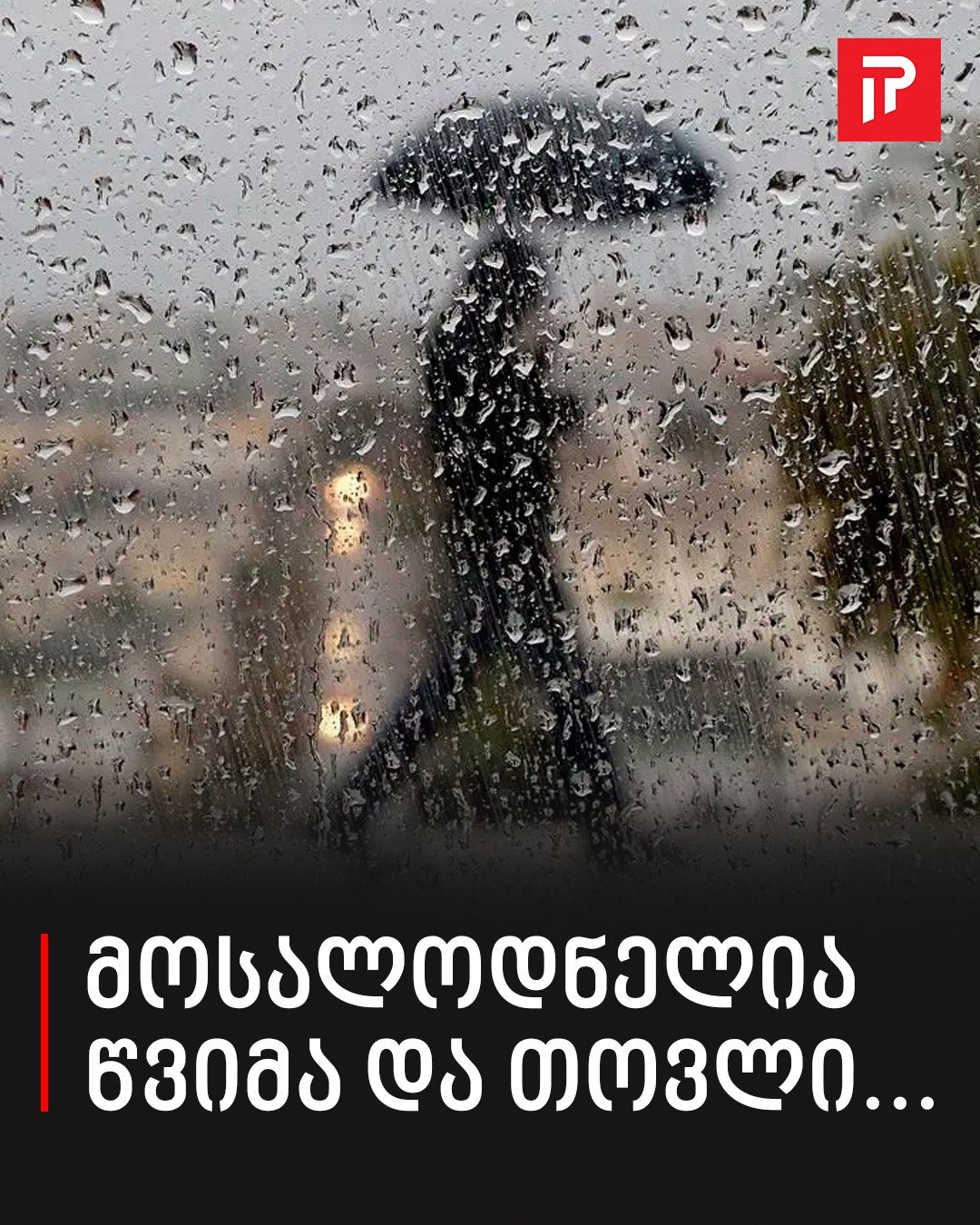 დასავლეთ საქართველოში – დროგამოშვებით ღრუბლიანობის მომატება. ღამით ზოგიერთ, დღისით უმეტეს რაიონში წვიმა, დასავლეთის ქარი 10-15 მ/წმ. ჰაერის ტემპერატურა: დაბლობში ღამით +5, +10°, დღისით +10, +15°; მთაში ღამით +3, +8°, დღისით +8, +13°; მაღალ მთაში ღამით -2, +3°, დღისით +8, +13°