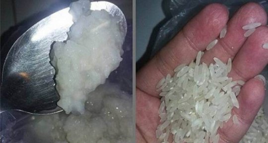 პლასტმასის ბრინჯი ერთი შეხედვით არაფრით განსხვავდება ჩვეულებრივისგან, მაგრამ მოხარშვის შემდგ არ რბილდება და, რაც მთავარია, ჯანმრთელობისთვის სერიოზულ საფრთხეს წარმოადგენს.